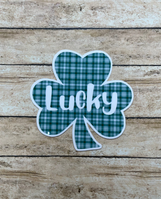 Lucky Green Plaid Shamrock Sticker